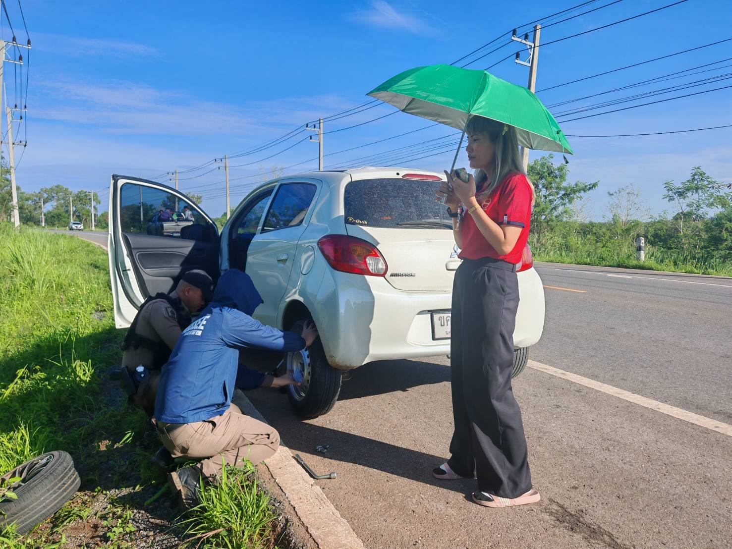 ช่วยเหลือประชาชน รถยางหลังแตก
