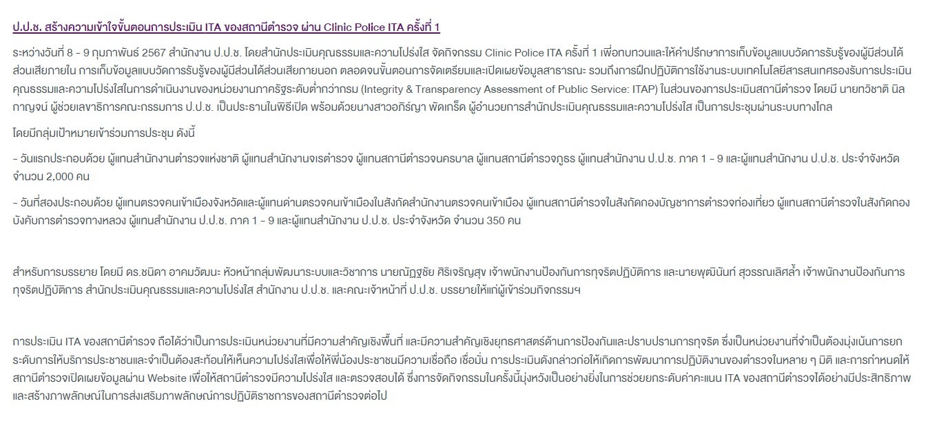 ป.ป.ช. สร้างความเข้าใจขั้นตอนการประเมิน ITA ของสถานีตำรวจ 26 กุมภาพันธ์ 2567 โดย moosee_moosee / ข่าวขับเคลื่อนการดำเนินงาน ITA FacebookFacebookXXLINELine
