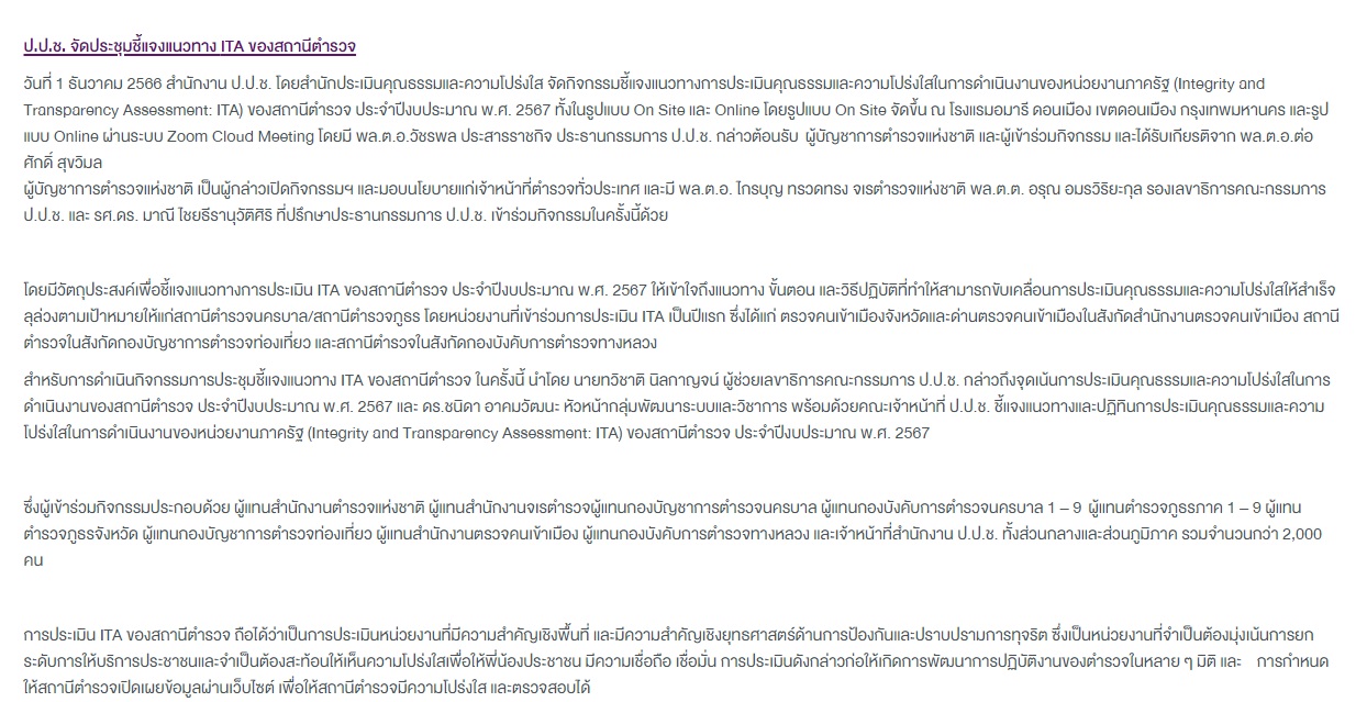 ป.ป.ช.จัดประชุมชี้แจงแนวทาง ITA ของสถานีตำรวจ 1 ธันวาคม 2566 โดย moosee_moosee / ข่าวขับเคลื่อนการดำเนินงาน ITA FacebookFacebookXXLINELine