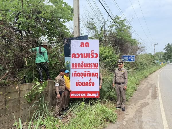 เราหว่งทุกการเดินทางของทุกคน จึงประชาสัมพันธ์ติดป้ายเตือน ในเส้นทาง ที่จุดเสี่ยงสภ.หมูสี ภ.จว.นครราชสีมา รายงานผลการปฏิบัติงาน