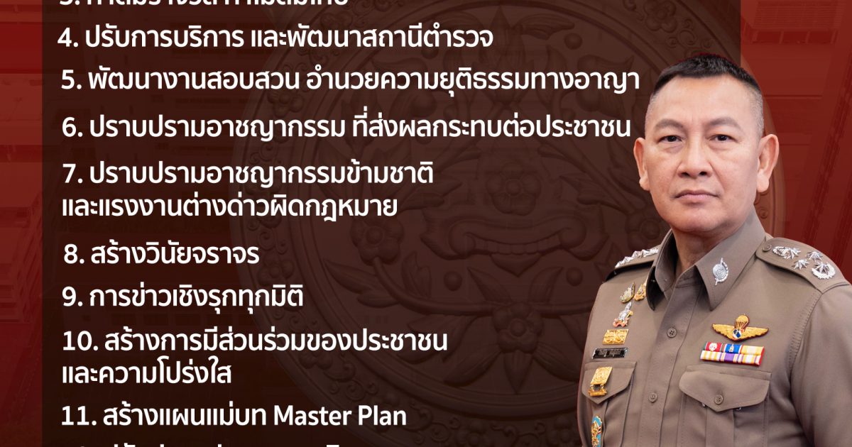 15 นโยบาย พล.ต.อ.กิตติ์รัฐ พันธุ์เพ็ชร์ ผู้บัญชาการตำรวจแห่งชาติ 5 พฤศจิกายน 2567 โดย moosee_moosee / ข่าวประชาสัมพันธ์ FacebookFacebookXXLINELine